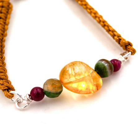 Pulsera artesanal con piedras naturales (Citrino, ágata rosas y verdes), pulsera de macrame trenzado acabado en nudo ajustable para diferentes tallas de muñeca.