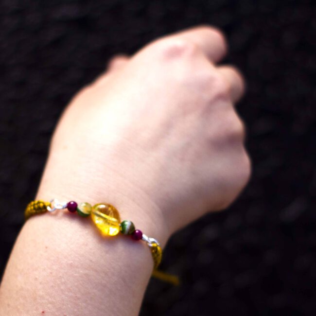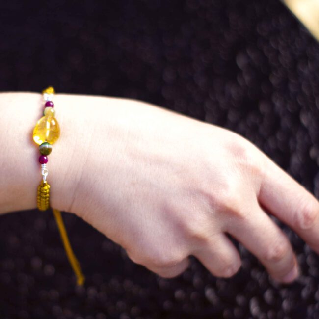 Esta pulsera une el citrino que invita a la abundancia, el ágata rosa que abre la gratitud y el ágata verde que aporta equilibrio y firmeza; juntas crean una pieza que acompaña y atrae la prosperidad en tu día a día.