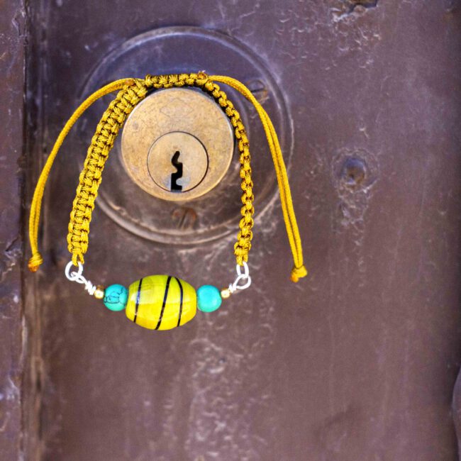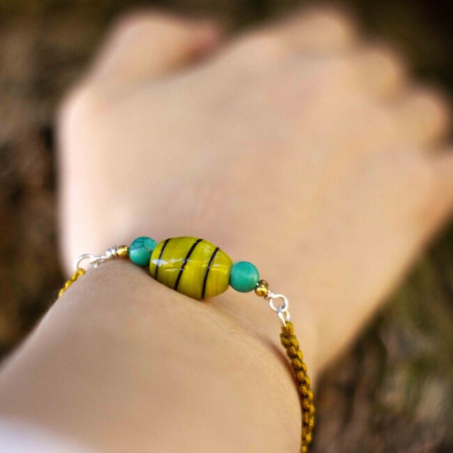 Pulsera creada para despertar  en ti la luz suave de la primavera. Su cristal amarillo guarda un rayo de sol y las piedras turquesas  respiran frescura. La combinación perfecta para elevar tu energía.